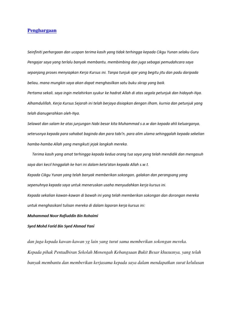 Contoh Penghargaan Folio Sejarah / 2. Selain itu, penghargaan dan terima kasih juga . Contoh folio sejarah pt3 2022 penghargaan, pengenalan, objektif kajian, kaedah kajian, soal selidik, rumusan pelajar tingkatan 3, 2, 1, .